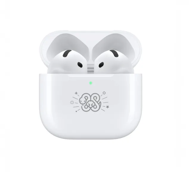 The Year of the Snake AirPods 4 come with a distinctive design, featuring a custom-engraved charging case. The case showcases two snakes surrounded by fireworks, capturing the spirit of the celebration. In addition to this festive engraving, the packaging also includes a symbol that emphasizes the limited-edition nature of the product. While the design is unique, the functionality of the AirPods remains unchanged from the standard model.